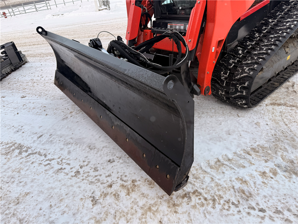 Gratte année 2024, avec angle hydraulique sur attache Skid Steer, 96 po de largeur.